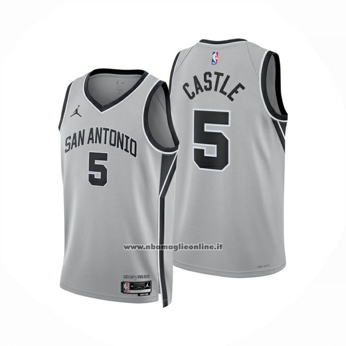 Maglia San Antonio Spurs Stephon Castle No 5 Statement 2025-26 Grigio